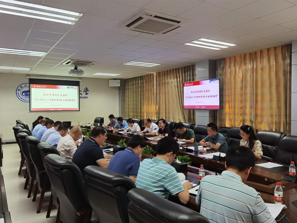 1025日下午,机关党委在雁山校区行知楼A201会议室召开扩大会议,专题学习党的二十大精神,对机关党委各支部学习宣传贯彻大会精神有关工作作出初步部署。会议由机关党委书记邱杰同志主持。