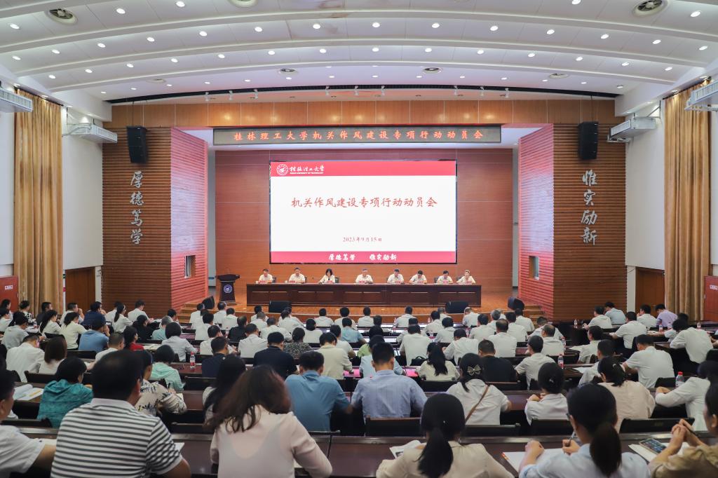 为巩固和深化学习贯彻习近平新时代中国特色社会主义思想主题教育成果,贯彻落实学校开展作风、教风、学风建设的工作要求,切实加强机关作风建设,提高机关服务质量和水平,提升管理效能和工作效率,以机关作风建设带动机关干部队伍建设,推动学校高质量发展,9月15日上午,学校在屏风校区图书馆报告厅召开机关作风建设专项行动动员会。学校党委书记邓军出席会议并讲话。学校党委常委、纪委书记韦学敏主持会议。机关党委委员,机关职能部门全体处级干部、科级干部参加会议。