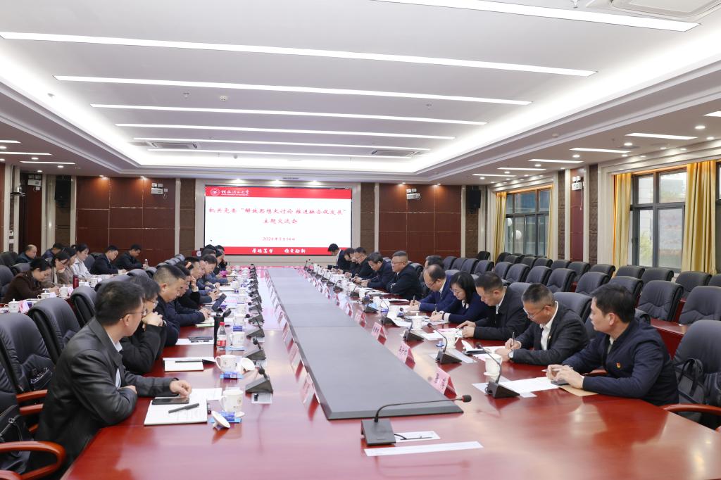 3月14日下午,学校在雁山校区召开机关党委“解放思想大讨论 推进融合促发展”主题交流会,深入学习习近平总书记对广西重大方略要求,认真贯彻落实学校党委三届七次全会精神和2024年“解放思想 创新求变 加快推进高水平理工大学建设”处级领导干部专题培训班工作部署,动员机关干部解放思想、创新求变,加大力度推进党建与业务深度融合,以思想大解放推动机关各项工作高质量发展,为学校高水平理工大学建设作出机关更大的贡献。学校党委书记邓军,党委副书记吴志强,自治区纪委监委驻beat365手机版官网入口纪检监察组组长,学校党委常委、纪委书记韦学敏,党委常委唐壮东、叶昊、邱杰,校长助理张成龙出席会议。各单位、各部门主要负责人参会。会议由吴志强主持。