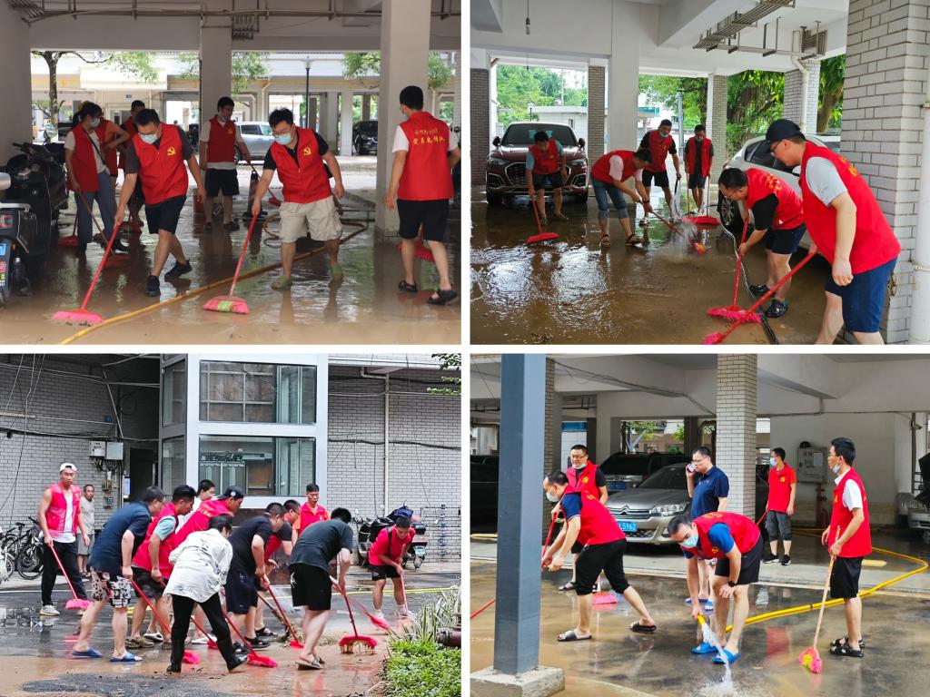 6月20日,桂林特大洪水洪峰过境,水位回落,城区积水开始有序排出。受地势影响,beat365手机版官网入口东城小区家属区积水严重,洪水退去后留下厚厚一层淤泥,小区内被水泡过的垃圾以及物品遍地,严重影响居民正常出行生活。但受限于人力物力,清淤消杀工作未能得到有效开展。越是艰难越向前,前日刚刚在屏风校区战斗的机关党员们再次挺身而出,奋勇争先,在东城小区刮起一股助清淤、保通畅的“红色旋风”。