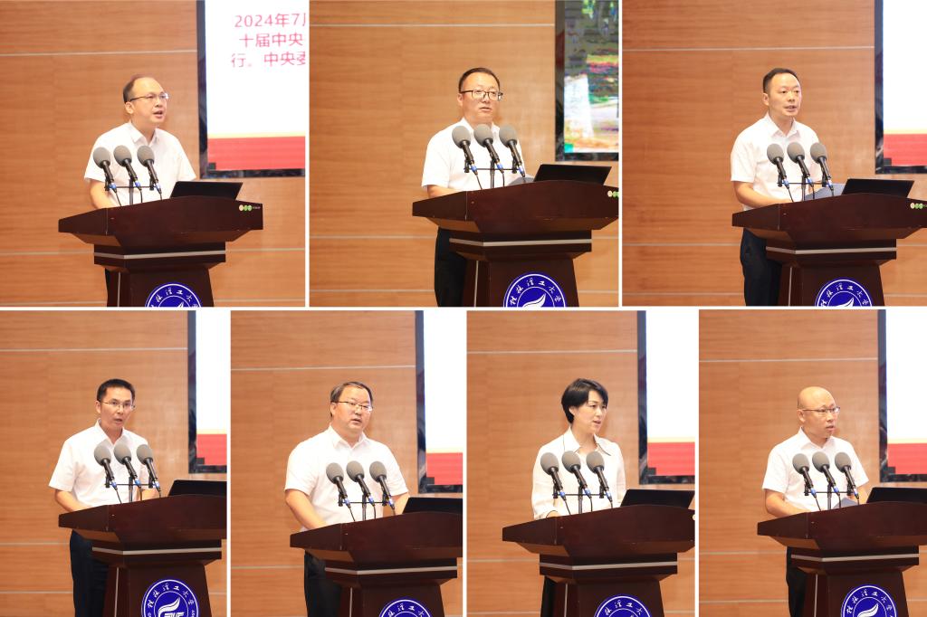 王敦球指出,学校党委三届八次全会全面总结了学校2024年上半年的主要工作,为今年下半年工作提出了工作思路、明确了努力方向。他强调,各单位各部门要牢牢抓住全面实现年度各项目标、持续巩固向好态势的关键阶段,聚焦立德树人,在强化人才培养上持续用力;聚焦学科建设,在凸显学科优势上增强动力;聚焦人才引育,在建设人才高地上悉心毕力;聚焦科技创新,在有组织的科研上精准发力;聚焦开放办学,在办学资源拓展上不遗余力;聚焦内部治理,在深化综合改革上竭尽全力;聚焦民生福祉,在保障改善民生上凝心聚力;聚焦风险防控,在维护安全稳定上严实有力,进一步锚定目标、攻坚克难,解放思想、担当实干,确保2024年下半年各项重点任务落地落实、各项工作出新出彩。