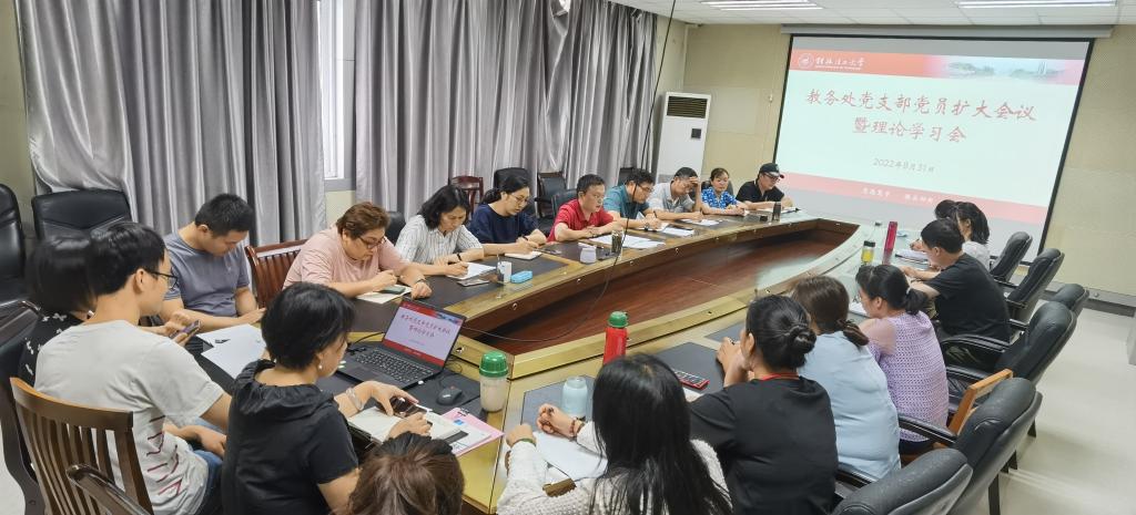 8月31日下午,教务处党支部在雁山校区行知楼B301会议室召开党员大会议暨理论学习会。会议由支部书记游少鸿同志主持,教务处全体党员参加了本次会议。