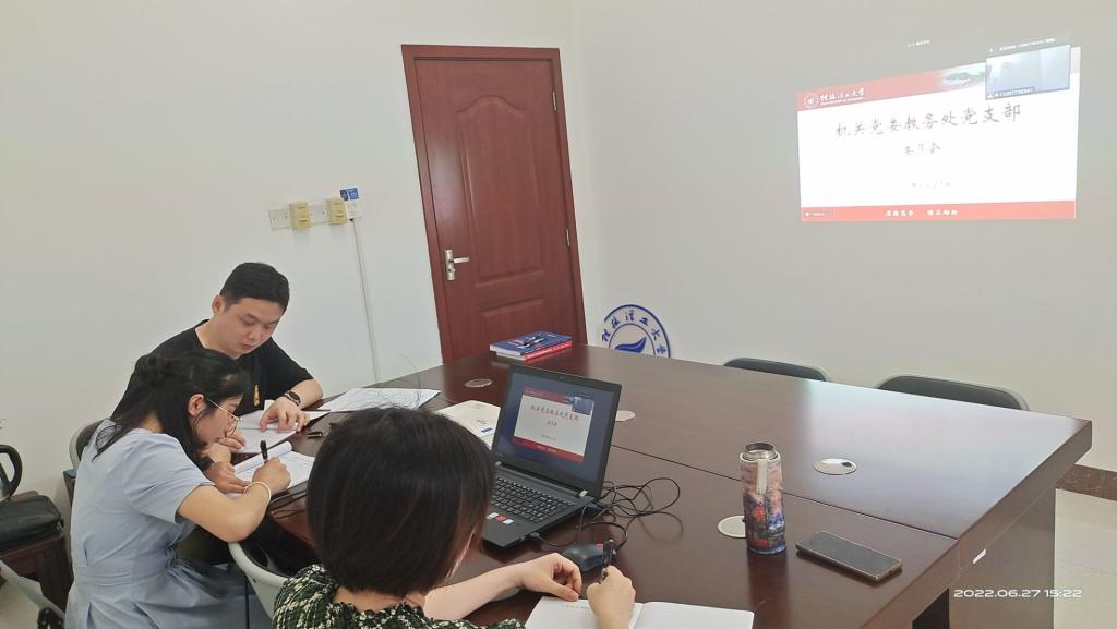 2022年6月27日下午,教务处党支部在雁山校区B302会议室召开支委会,活动由支部书记游少鸿同志线上主持,支部全体委员出席。