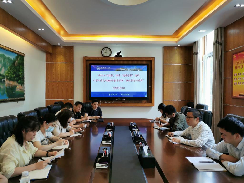 5月31日下午,人事处党支部在屏风校区第二会议室举行廉政教育专题会议,拉开“做实日常监督,推进‘清廉学校’建设”为主题的“廉政教育活动周”系列活动序幕。活动由支部组织委员、人事处副处长冯良元同志主持。