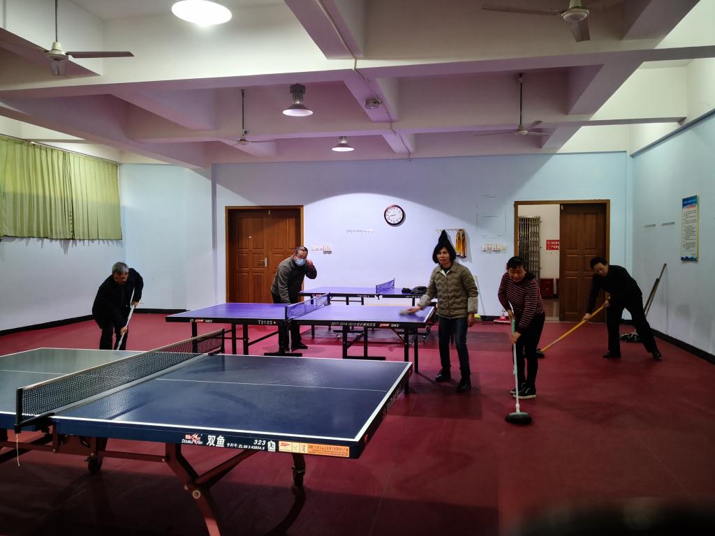 活动中,大家纷纷拿起扫帚、拖把、抹布、铲子等工具,对教职工乒乓球活动室的天面、地面和乒乓球桌面等处进行了认真清扫,同时全面清理了堆放的杂物,经过1个小时的紧张劳动,活动室内面貌焕然一新。此次主题党日活动,领导干部和党员充分发扬不怕脏、不怕苦、不怕累的精神,用实际行动为教职工营造出干净、整洁的健身活动环境,同时也进一步增强了党支部的凝聚力和战斗力,充分发挥工会党支部带头开展“职工之家”建设,积极践行了“我为群众办实事”的初心使命,受到了前来健身锻炼的教职工们的好评。