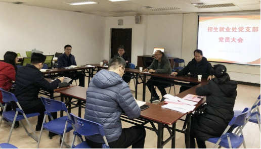 2021年12月29日,招生就业处党支部在屏风校区校园招聘中心会议室召开党员大会,讨论孟晨红同志由中共预备党员转为正式党员事宜,会议由支部书记汪晟主持,支部8名党员参加表决。