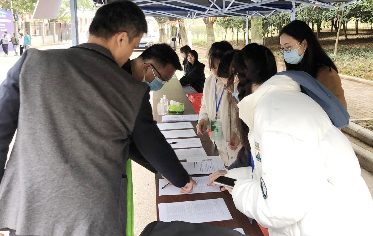 全体党员同志提前一天到达雁山校区体育训练馆做好双选会现场的会场安排与布置工作。双选会当天,支部全体党员共同开展毕业生就业创业服务,为现场毕业生提供指引、政策宣讲、择业指导和对接用人单位等志愿服务,助力2022届毕业生顺利就业。