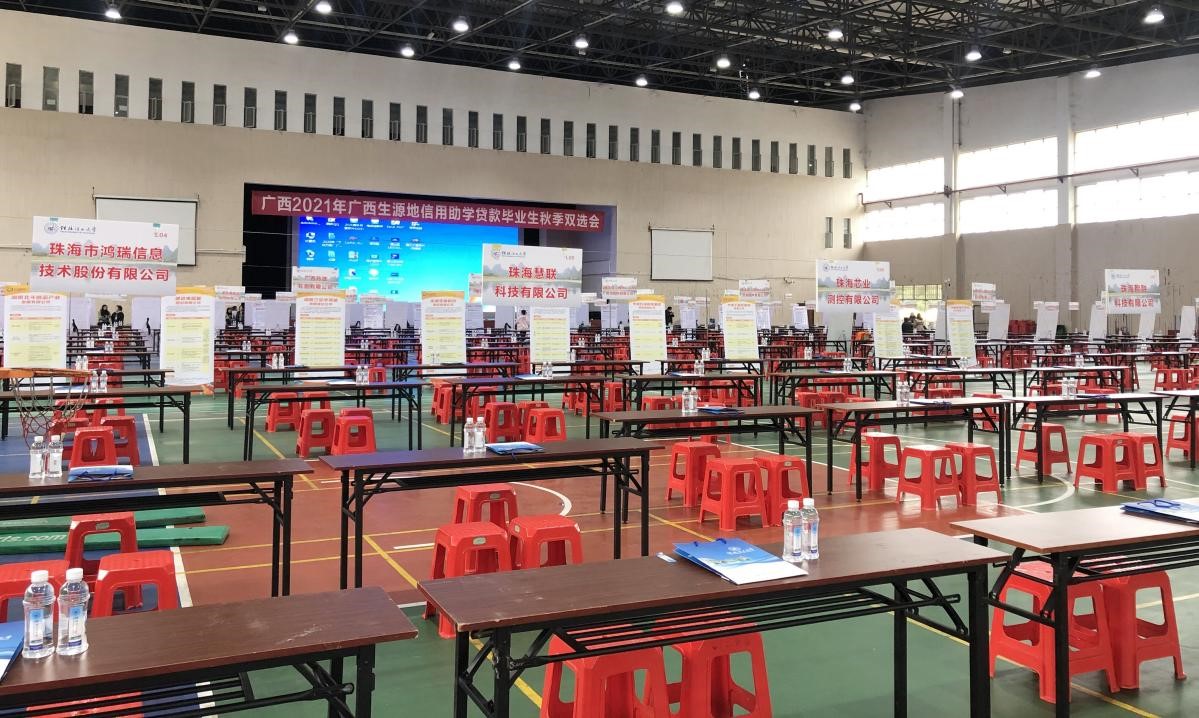 10月22日,由广西壮族自治区教育厅和国家开发银行广西分行主办、广西壮族自治区学生资助管理中心协办、我校承办的2021年广西生源地信用助学贷款毕业生秋季第一场暨学校2022届毕业生秋季首场线下双选会在我校雁山校区体育训练馆举办。为保障此次双选会的顺利召开,招生就业处党支部开展“助力校园双选会”主题党日活动,服务现场求职学生与用人单位。