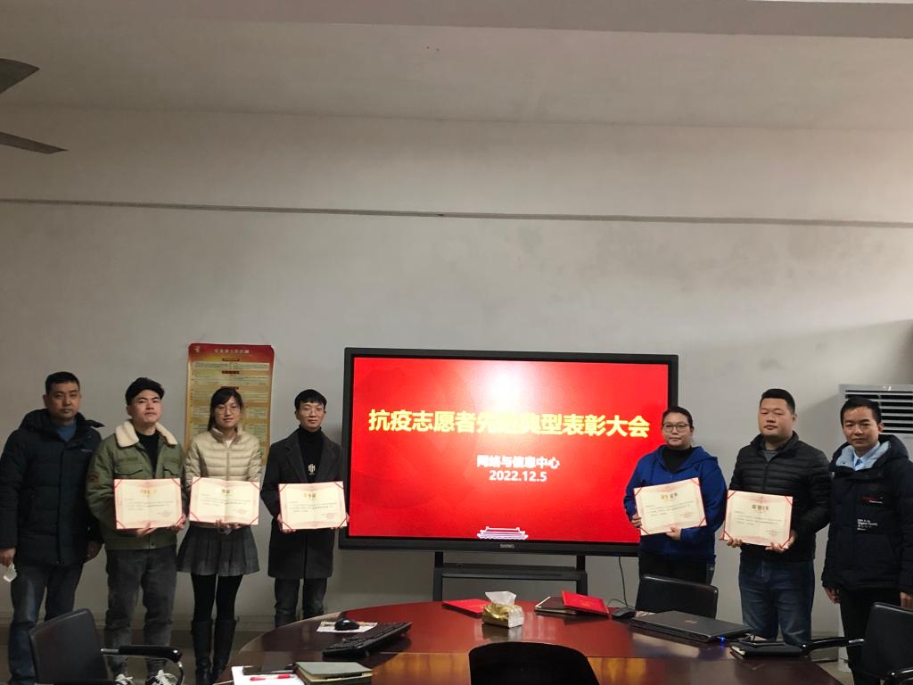 自校园疫情防控阻击战打响以来,网络与信息中心党支部全体党员在学校党委和学校疫情防控指挥部的领导下,坚决贯彻落实疫情防控的各项决策和部署,涌现了一批积极响应、义无反顾奔赴学校疫情防控一线参与志愿服务的党员和入党积极分子。为弘扬精神,表彰优秀,树立榜样,进一步激励全体教职工奋发有为,12月5日上午,网络与信息中心召开全体职工大会,对党支部积极参加抗疫的党员和入党积极分子志愿者先进典型进行表彰。