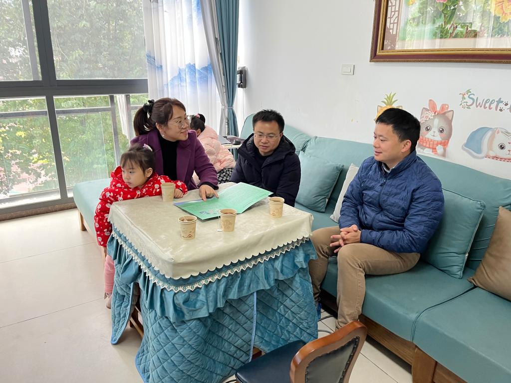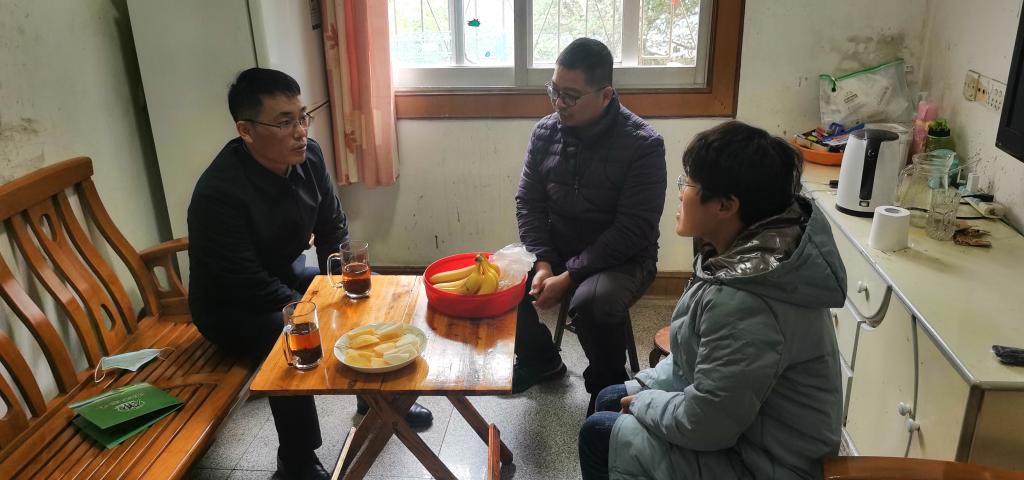 邓炼同志到唐艳妹家中进行家访