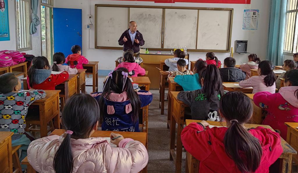 为更好的帮扶商家村,图书馆前期进行了实地调研,了解到商家村地理位置偏远,仅有的一所小学商家小学,目前存在师资力量薄弱、教学环境简陋、优质教育资源匮乏等困难,图书馆党支部召开专题帮扶研讨会,确定具体文化帮扶措施。文化帮扶活动当天,图书馆为商家小学援建了阅读角,捐赠新书架以及250余册图书,这些图书既有中国古典四大名著的注音彩绘本,也有世界儿童共享的经典丛书,既有益智有趣的书籍,也有可以开拓眼界的科普知识,同学们今后通过这个阅读角就能够了解大山以外的世界。在教室里,我馆韦巍老师为小学生讲授书法课,他强调书法是中华优秀传统文化的重要组成部分,写好中国字有着重要的意义,他耐心讲解硬笔书法的基础要领和技巧,现场指导同学们进行硬笔书法的练习。这堂书法课让同学们体会到了书法的美妙,感悟到祖国传统文化的博大精深,激发了写好汉字、学习书法的兴趣,提高了学习的积极性,是非常有意义的一堂课。