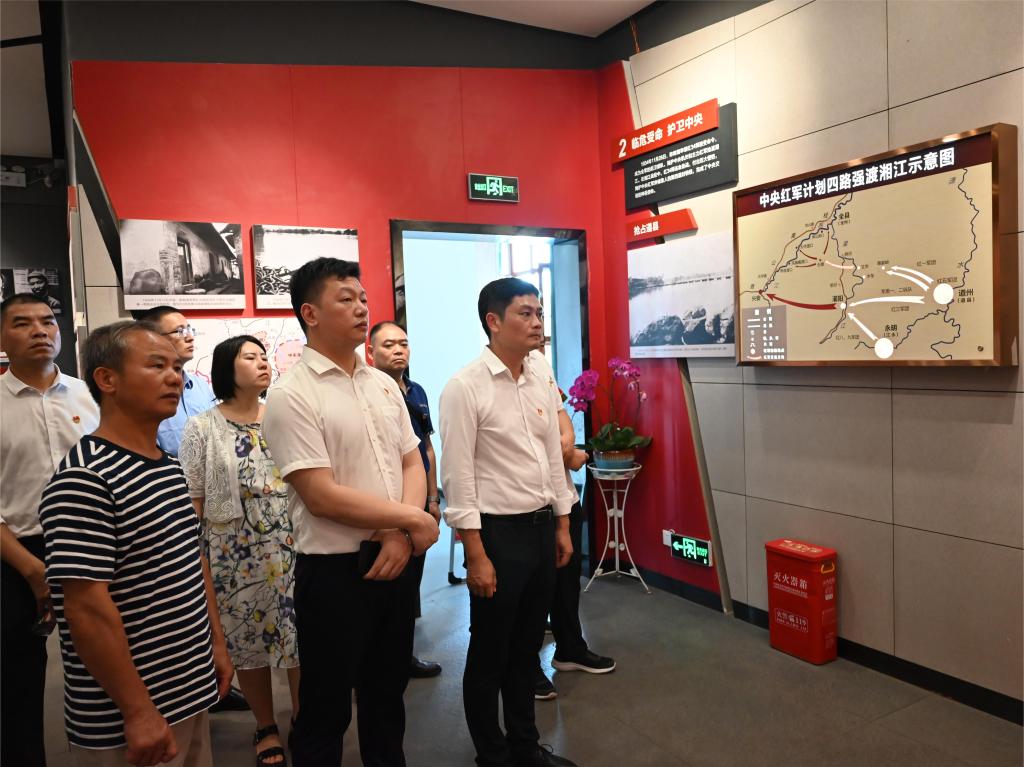 在讲解员的引导下,首先来到了陈树湘烈士墓前,全体党员满怀敬仰和哀思,举行向陈树湘烈士敬献花篮仪式,在陈树湘烈士墓、红军三十四师烈士墓、革命烈士纪念碑前默哀、鞠躬,祭奠缅怀他们为国家前途、民族解放不畏牺牲、不屈斗争的革命精神和对党绝对忠诚的坚定信仰。在纪念馆内,全体党员详细地了解陈树湘烈士的生平、革命事迹,特别是“宁断肠不断脊梁”的壮烈故事,在关于陈树湘烈士的图片、文字、史料前久久驻足,为陈树湘烈士短暂而又悲壮一生热泪盈眶。在纪念馆多功能报告厅,全体党员聆听了微党课《断肠明志铸忠魂》,重温那段艰苦卓绝的革命历史,进一步了解陈树湘烈士践行“为苏维埃流尽最后一滴血”的铮铮誓言和感人故事。最后,在纪念馆前广场,全体党员面对党旗,紧握右拳,重温入党誓词,筑牢初心使命之基。
