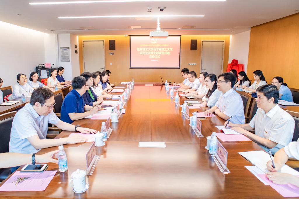 为充分发挥党建引领作用,实现党组织优势互补,促进党建与业务深度融合,6月17日,我校和华南理工大学(以下简称“华工”)研究生院党支部在华工五山校区开展联合共建活动。华工党委常委、统战部部长、主题教育联络组第一小组组长王丹平,我校党委常委、统战部部长、机关党委书记邱杰出席。双方机关党委领导、华工研究生院党支部全体成员和我校研究生院党支部代表参加了本次活动。