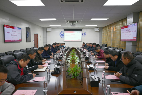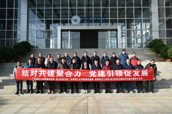 为进一步提升党建工作质量,实现党组织优势互补,以互建促自建,努力构建“资源共享、优势互补、互相促进、共同提高”的党建工作格局,12月21日上午,学校党委武装部保卫处党支部与广西师范大学党委武装部保卫处党支部在雁山校区开展结对共建主题党日活动。学校党委常委、党委统战部部长、机关党委书记邱杰出席会议,会议由学校党委武装部保卫处党支部书记张瑞主持,两校武装部保卫处党支部全体党员参加。