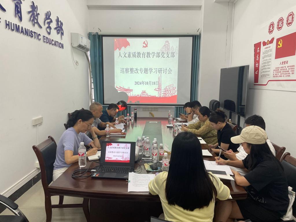 2024年10月18日下午,人文素质教育教学部党支部在屏风校区7110会议室召开了支部党员大会。会议由支部书记覃业飞主持,全体党员教师参会。