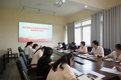 为切实做好2024机关工作座谈会会议精神的落地见效,25日上午,研究生教工支部在雁山行知楼B608召开集中学习会议,进行专题传达学习。会议由支部书记孙巍主持。