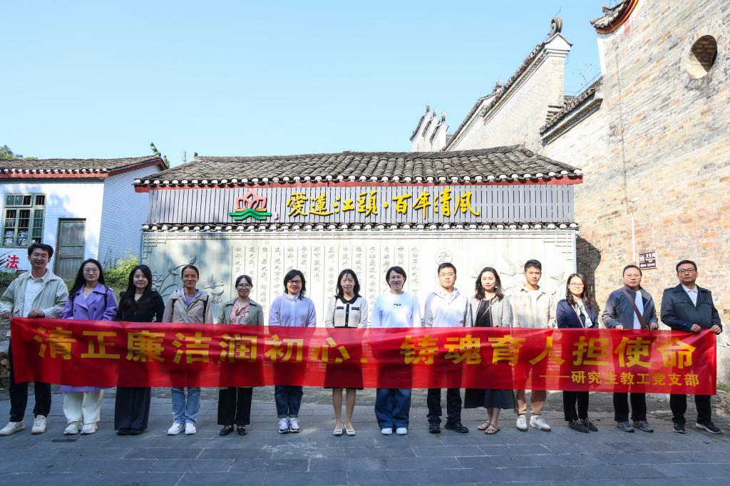 为深入贯彻落实全面从严治党要求,切实加强党风廉政建设,筑牢党员干部拒腐防变思想底线, 11月1日,研究生教工党支部全体党员前往廉政文化教育基地灵川县江头村,开展“清正廉洁润初心,铸魂育人担使命”主题党日活动。