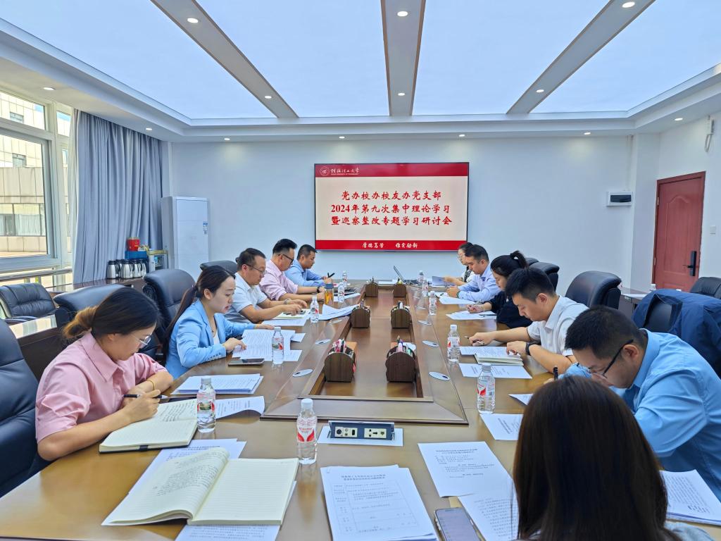 10月25日上午,党办校办校友办党支部在雁山校区行知楼第二会议室开展2024年第九次集中理论学习暨巡察整改专题学习研讨会。会议由校长助理、党办校办法务办主任、党支部书记张成龙同志主持,支部全体党员同志参加会议。